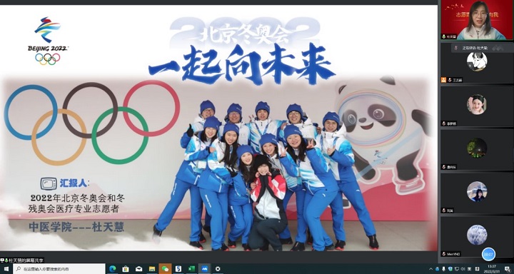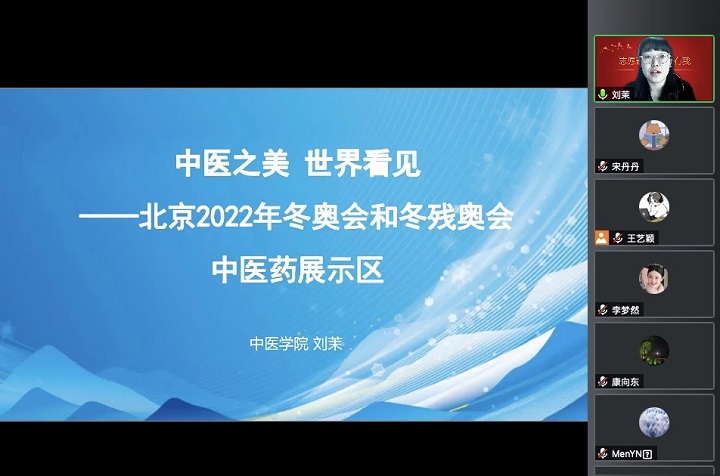 yl9193永利集团硕士第一党支部书记刘茉老师以“中医之美 世界看见——北京2022年冬奥会和冬残奥会中医药展示区”为主题,介绍了公司在北京冬残奥会承担的工作,如“10秒中医药体验馆”、医疗志愿者、城市志愿者、北京奥运村疫情隔离点等,并着重分享了位于“10秒中医药体验馆”的志愿服务经历。2022年北京冬残奥会中“10秒中医药体验馆”的展区,向世界各国运动员及随行人员展示了中医之美,进一步提升了中医学子的专业自信、文化自信和民族自信。