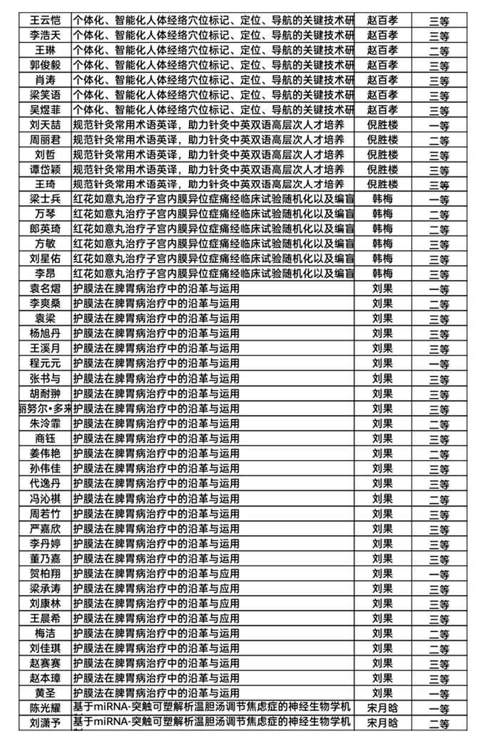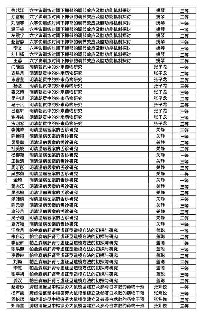 2022年3月,第三期项目届满一年,进入结题阶段。同学们提交结题报告,撰写工作总结和员工总结,各项目指导教师填写教师评价,认真总结了一年来科研工作的成果和收获。部分同学以第一作者身份发表论文,部分同学将所得研究结果整理成册,各项目组均取得了满意的研究成果。充分展现了北中医学子勇于开拓创新、积极进取的精神风貌。