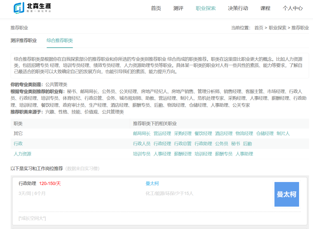 “职业探索”是职业生涯规划中很重要的一步,也是系统中的关键之一,系统在“职业探索” 这部分包含三个部分:“推荐职业”、“职业查询”、“收藏职业”。