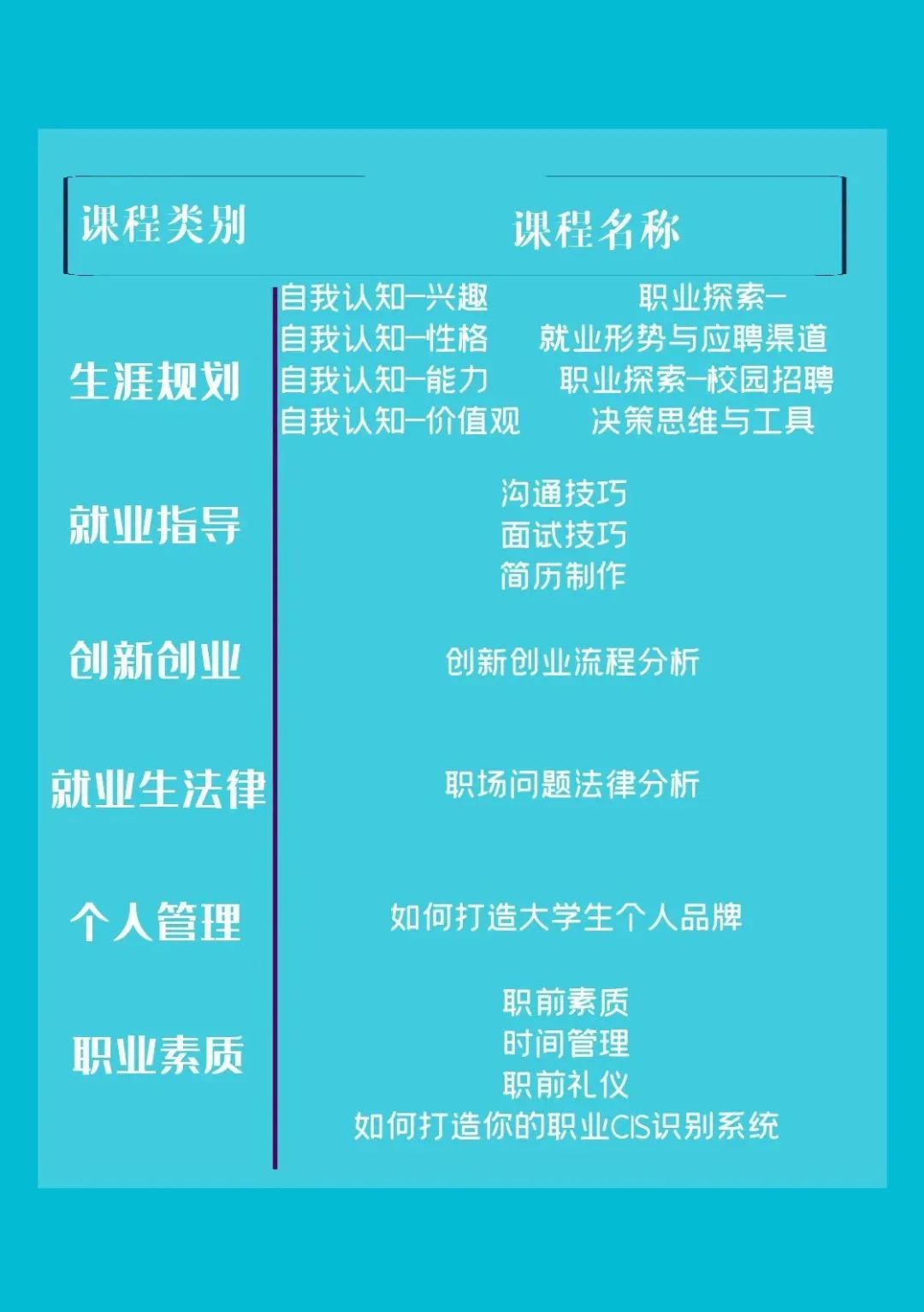 为帮助同学们更好地进行自我了解以及职前知识的学习,职业测评系统还为大家开设了一些免费的课程,大家可通过观看学习这些视频来精准自己的定位以及更多的学一些就业技巧,相关课程安排见下表~