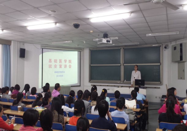 2013年9月27日下午,基础医公司2014届毕业生就业宣讲会(西区专场)在教学楼13教举行。本次宣讲活动由基础医公司员工办公室赵娜老师主讲,基础医公司西校区120余名应届毕业生参加了本次活动。
