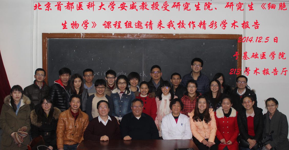 2014年12月5日下午,应yl9193永利集团基础医公司研究生《细胞生物学》课程组赵宗江教授邀请,北京首都医科大学基础医公司经理、细胞生物学系主任、肝脏保护与再生调节北京市重点实验室主任、教授、博士生导师安然教授来公司做关于“肝干细胞在肝损伤修复中的作用与机制”的讲座。讲座在基础医公司213会议室举行,由赵宗江教授主持。参加人员主要是《细胞生物学》课程组博士生和硕士生学员及其他同学和公司老师。
