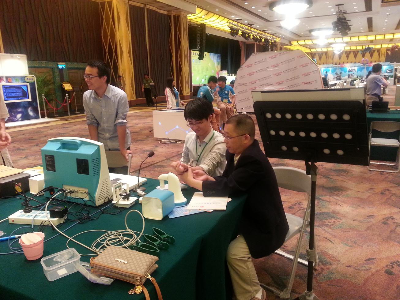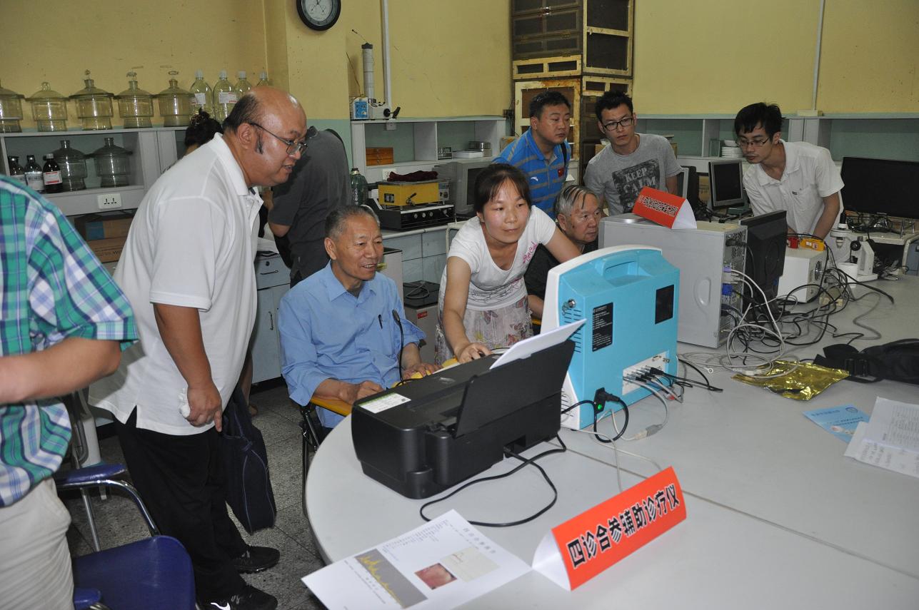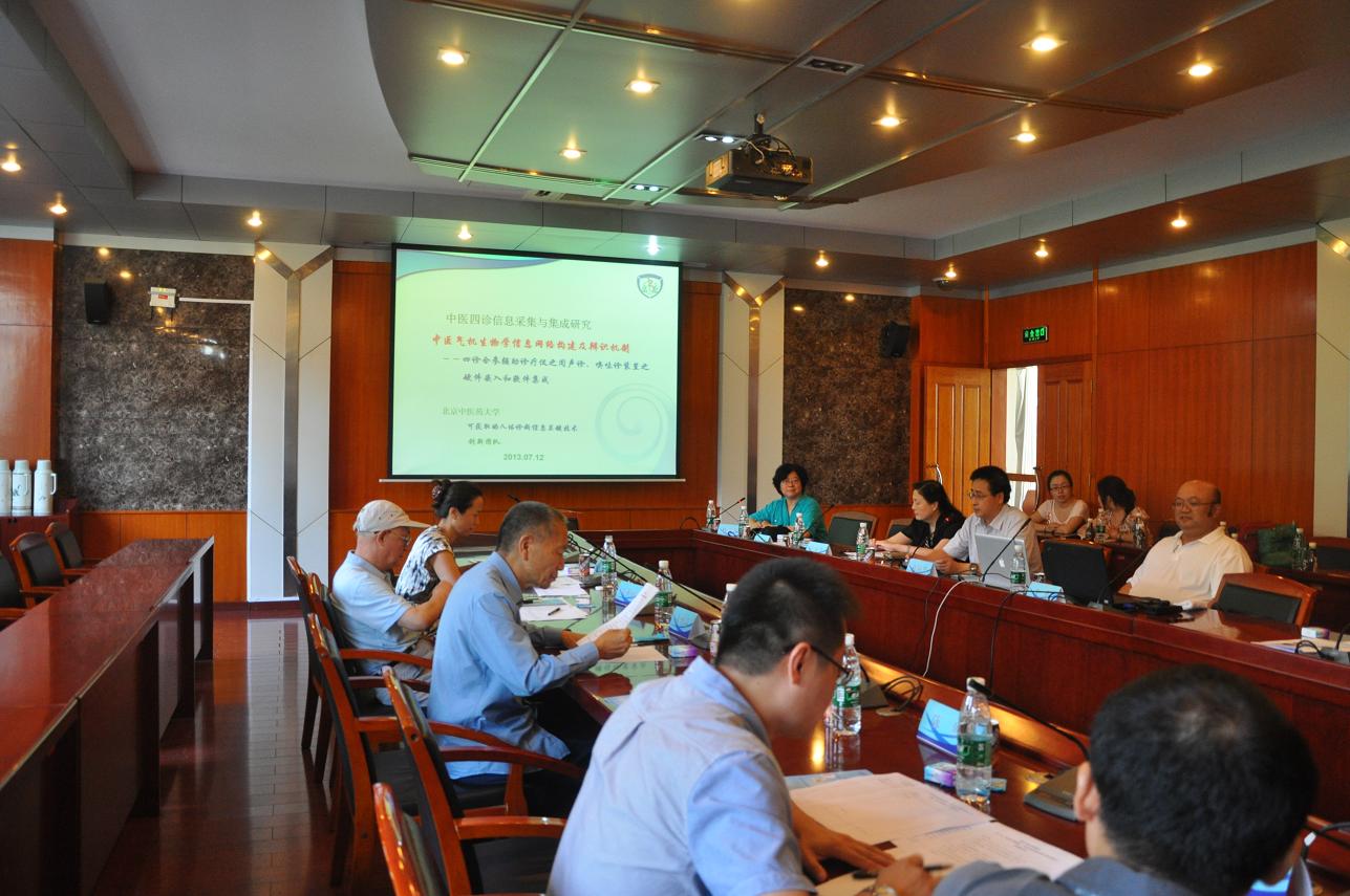继7月5日“中医四诊合参辅助诊疗仪”受科技部之邀参加澳门“2013科技活动周暨科普活动展”之后,7月12日课题组迎来了国家中医药管理局组织的国家“十二五”科技支撑计划课题“中医四诊信息采集与集成研究”督导会。与会督导专家有空军航空医学研究所俞梦荪院士、中国中医科公司翁维良研究员、北京理工大学吴祈耀经理、北京市食品药品监督管理局陈然部长、左霖部长。会议由国家中医药管理局孙丽英处长主持。专家组听取了牛欣教授代表课题组进行的课题研究进展汇报,并到实验室进行现场考察,亲身体验仪器诊疗。以俞梦荪院士为组长的专家组对yl9193永利集团课题组的研究工作及阶段性进展非常满意,并提出了重要的意见与建议。公司科研处刘铜华处长、葛纫华、曹伟跃老师到会并汇报了公司的科研管理方面工作。参加本次会议的还有yl9193永利集团“可获取的人体诊断信息创新团队”师生20余人参加了会议。