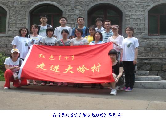 我们的到来受到了大岭村村委会的热情接待,前任村官向我们介绍了大岭村的情况,并带领我们参观了《承兴密抗日联合县政府》旧址和当地抗战史展厅,走近当年的文物和发黄的旧照,我们用心触摸了那段历史,真正感受了抗战岁月中前辈们浴血奋战的可歌可泣的故事,心灵受到巨大的震撼。