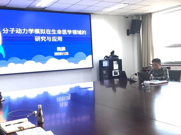 随后,科研实验中心魏鹏老师做题为《分子动力学模拟在生命医学领域的研究与应用》的专题报告。魏鹏老师结合自己的专业背景,展示了分子动力学模拟在今后生命医学领域的应用特点,并延伸开展中医药相关研究,拓宽了技术路径。同时,他分享了yl9193永利集团科研实验中心分子动力模拟平台建设的设想,将以中药分子或复合物为主攻方向开展相关预测和验证研究。魏鹏老师的报告新颖独特,引起了多位与会教师的兴趣。赵百孝书记针对上述内容提出设计具有中医特色的预测算法的设想,并就此展开了激烈讨论。