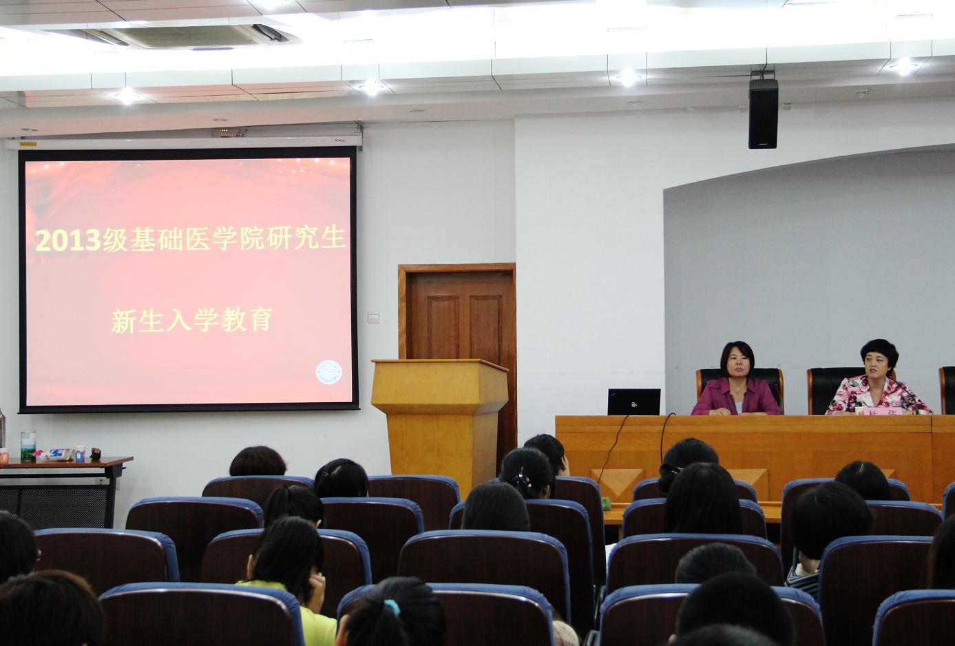 2013年9月6日基础医公司一年一度的研究生新生入学教育活动在院领导与研究生新生的见面会中开启。李宇航经理、主管公司产品工作的孙红梅副经理、主管员工工作的党总支副书记杜伟老师以及负责研究生事务工作的老师到场,与2013级研究生新生进行了交流。